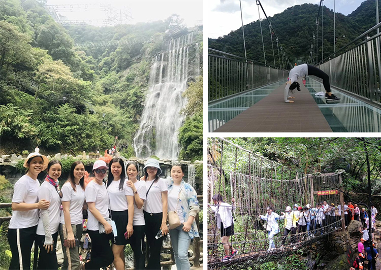 Tokrat smo bili v mestu Qinyuan, ki se nahaja v severnem osrednjem delu province Guangdong. Ima lepo naravno pokrajino in je znan po gorskem raftingu. Imeli smo prijeten čas za vse vrste dejavnosti na prostem. Poleg gorskega raftinga ta izlet vključuje tudi ZipLining in stekleno stezo. Vsi so uživali v teh pustolovskih in razburljivih dogodkih na prostem kampanja, je res vznemirljiva in dih jemajoča. Ob vseh teh simulacijah visoke intenzivnosti smo bili globoko olajšani in sproščeni ter popolnoma izgubljeni v tem čudovitem svetu.
